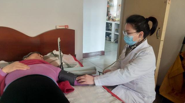 邯郸第二干休所李丹丹入户为老阿姨量血压