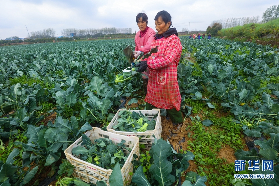 近年来,该合作社以“基地十合作社十贫困户”的种植管理模式,不断发展壮大西兰花等有机蔬菜种植,年产值可达650多万元,吸纳了当地100多名村民在家门口就业,带动贫困群众增产增收。新华网发(谢万柏 摄)