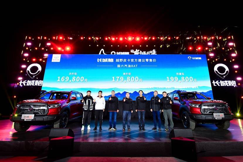 6月5日,长城炮越野皮卡上市,首期推出三款国六汽油8AT车型,其中四驱进阶版16 98万元,四驱高阶版17 98万元,四驱限量版19 98万。柴油