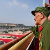 9月3日上午纪念中国人民抗日战争暨世界反法西斯战争胜利80周年大会在北京天安门广场隆重举行这是空中护旗梯队飞过北京上空摄影:陈晔华 张