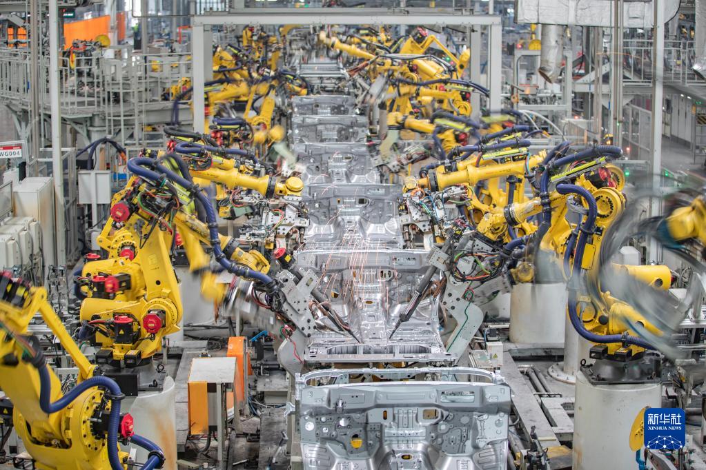 3月1日,在长城汽车重庆永川生产基地焊装车间,智能化焊接机器人在进行焊接作业。新华社记者 黄伟 摄