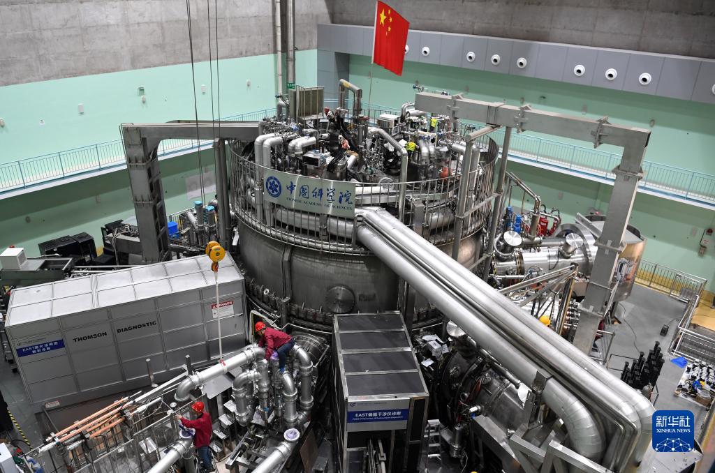 在中科院合肥物质科学研究院,工作人员对有“人造太阳”之称的全超导托卡马克核聚变实验装置(EAST)进行升级改造(2021年4月13日摄)。新华社记者 刘军喜 摄