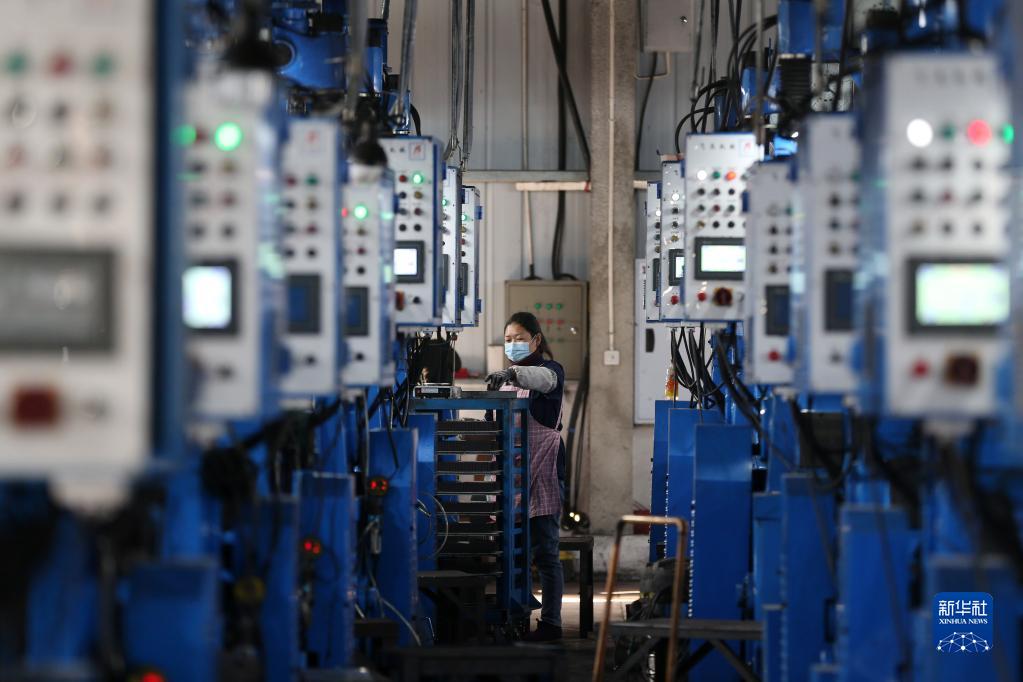 1月31日,工人在重庆市黔江区工业园区一电子科技公司生产车间加工电子元件。新华社发(杨敏摄)