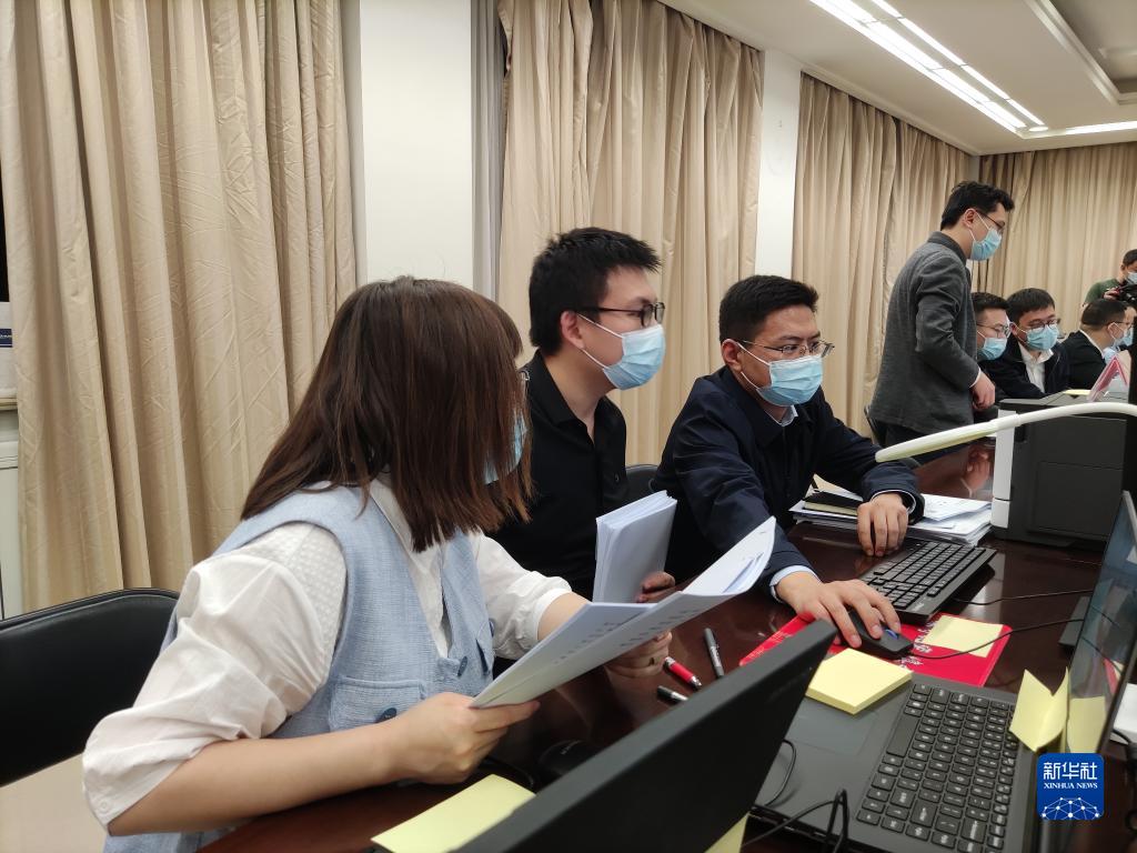 3月5日晚,国务院办公厅工作专班工作人员在认真梳理汇总代表委员意见建议。新华社记者 姚均芳 摄
