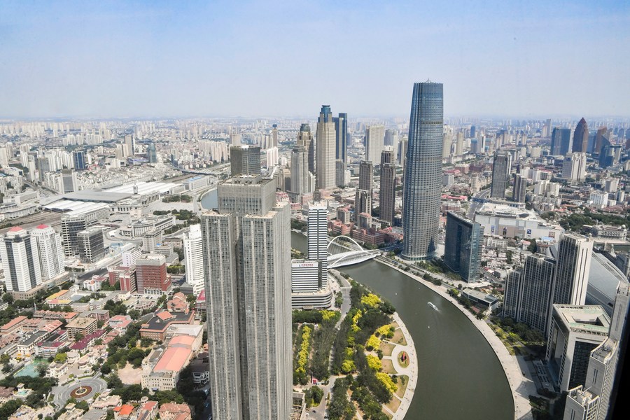 6月24日拍摄的天津海河沿线城市景观(无人机照片)。新华社记者 孙凡越 摄