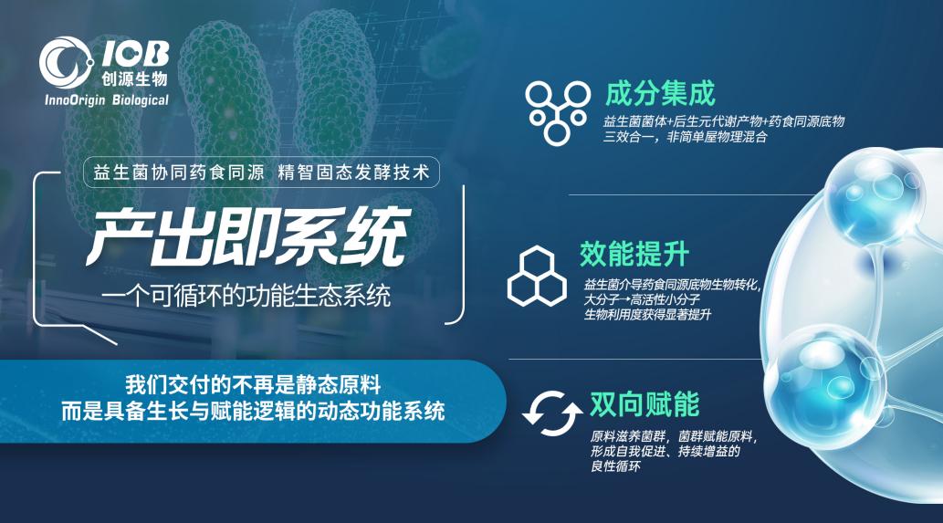 • 功效双向赋能:药食同源物质作为益生元滋养菌群生长;同时,菌群代谢又能转化并增强原料的原生功效,形成自我促进、持续增益的良性循环;
