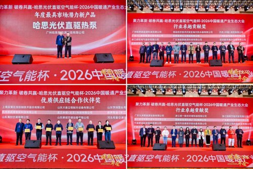 至此,“哈思光伏直驱空气能杯”2026中国暖通产业生态大会圆满闭幕。这是一场成果丰硕的行业盛宴:我们聆听了权威政策解读,洞察了前沿技术趋势,碰撞了巅峰管理智慧,见证了卓越标杆诞生。大会成功凝聚了“聚力革新、破卷共赢、共生”的广泛共识,提振了全行业迈向高质量发展的坚定信心。