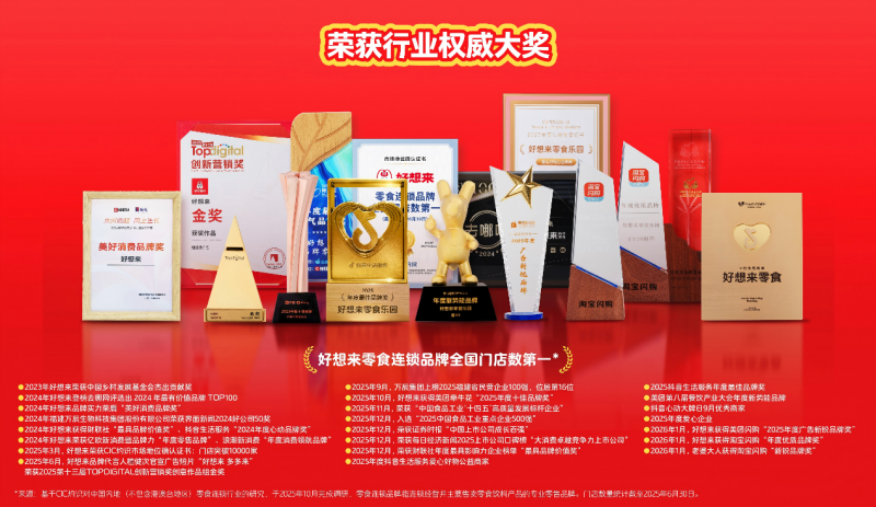 值得一提的是,好想来的优秀表现不仅体现在业绩数据上,更收获了行业权威认可与多项荣誉加冕。2025年好想来先后斩获美团牵牛花 “2025年度十佳品牌奖”、美团闪购 “2025年度广告新锐品牌奖”、淘宝闪购 “年度优质品牌奖”,多项行业大奖彰显了好想来在即时零售赛道的硬核实力与行业影响力。