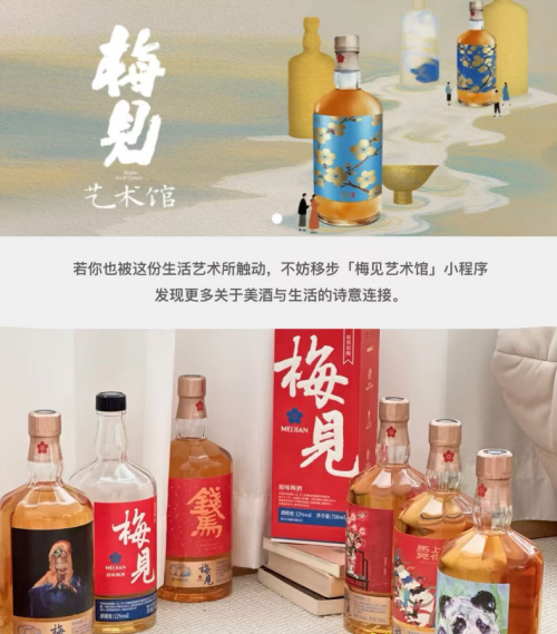 艺术与产品、日常生活的融合也成为新趋势。梅见青梅酒以“没有围墙的艺术馆”为理念,将东方美学融入产品设计、线下体验与日常饮用之中。蔡志忠、蒋友柏、安琪、谢小铨、金翔、钟大椿、文成武等上千名艺术家与书法家,与梅见青梅酒共同“搭建”了这座艺术馆,他们将各自的艺术创作融于青梅酒之中,让艺术在推杯换盏间缓缓流淌。