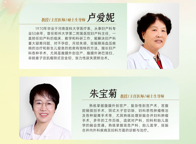 朱宝菊 主任医师、教授、硕士研究生导师 现任郑州大学第二附属医院妇产医院副院长、妇产科副主任,同时兼任郑州美中商都妇产医院妇产科主任医师。独创小切口仿生剖宫产术,在剖宫产切口美容缝合技术方面造诣深厚。从事围产医学领域研究数十年,擅长处理危重产科及合并症,担任河南省全民健康促进会妇产科专业委员会主任委员等多个学术职务。以第一作者或通讯作者身份发表SCI期刊论文1篇、核心期刊论文17篇,曾获河南省科学技术进步奖二等奖。