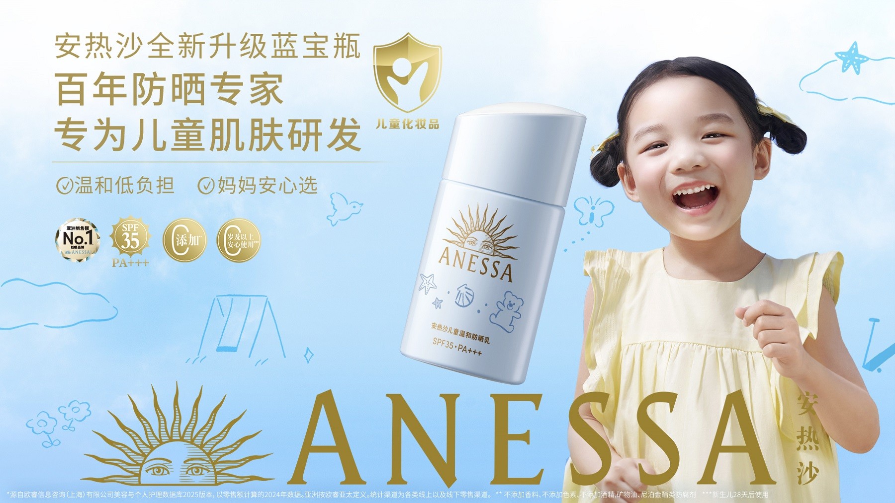 安热沙正是看到这一市场空白——缺失真正温和、专为儿童设计的防晒产品。依托资生堂集团百年的防晒科研积淀,安热沙将专业强项延伸至儿童领域,以全新蓝宝瓶回应消费者对儿童防晒的多重期待。