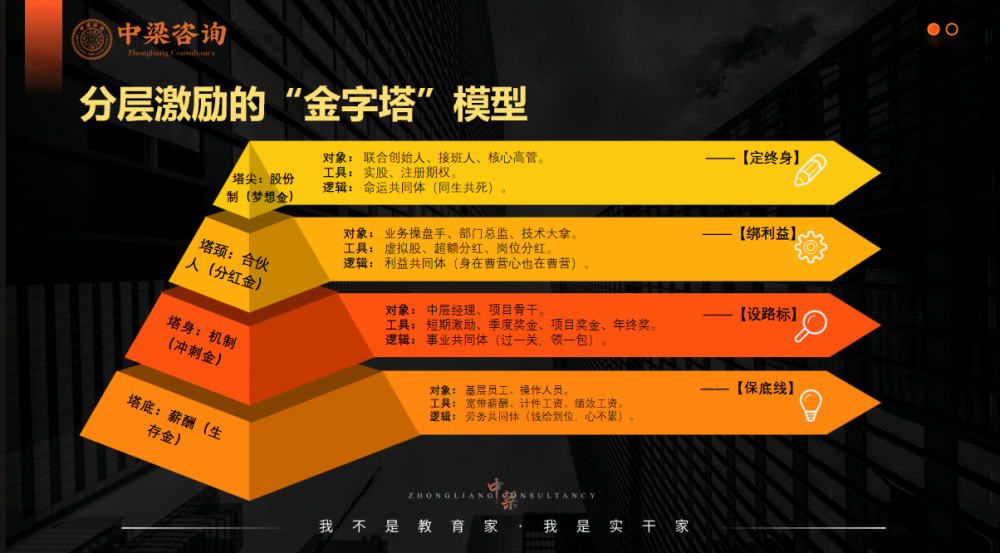 孙老师分享的“分层激励金字塔”模型,从保障生存的“薪酬机制”,到刺激当下的“战役机制”,再到绑定利益的“合伙人机制”,层层递进。他通过“日激励时间轴”、“师徒制防漏洞”、“PK赛马机制”等具体工具,展示了如何用高频的小刺激置换团队的持续兴奋感。