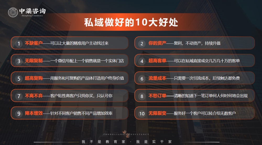 这背后,凝聚着中梁咨询创始人梁建老师“利他”的纯粹发心。每一页PPT、每一个工具、每一句分享,都经过了梁老师的亲自审核与设计,只为确保交付给老客户的,是最实战、最系统、最能落地的内容。