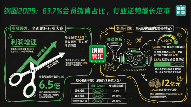 通过这三大关键数据中看到,锅圈在2025年实现了会员驱动下的体量和业绩增长双丰收,三大核心指标均领先餐饮和零售行业大盘。