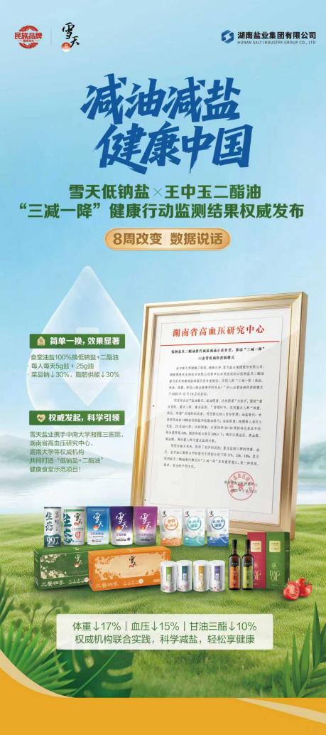 从机关食堂到学校课堂,此次科普活动是雪天盐业作为湖南省“减盐减油”专项行动实施主体之一,持续开展食盐科普“五进”(进机关、进餐厅、进学校、进社区、进乡村)行动的重要一环。值得关注的是,由湖南省高血压研究中心、中南大学湘雅二医院、湖南大学以及雪天盐业等单位联合发起的“低钠盐+二酯油”健康食堂示范项目,已于2025年12月正式启动。项目以“盐油替代、盐油限量、达标团餐”为抓手,将食堂常用油盐100%替换为低钠盐和二酯油,严格遵循每人每天5克盐、25克油的限量标准。