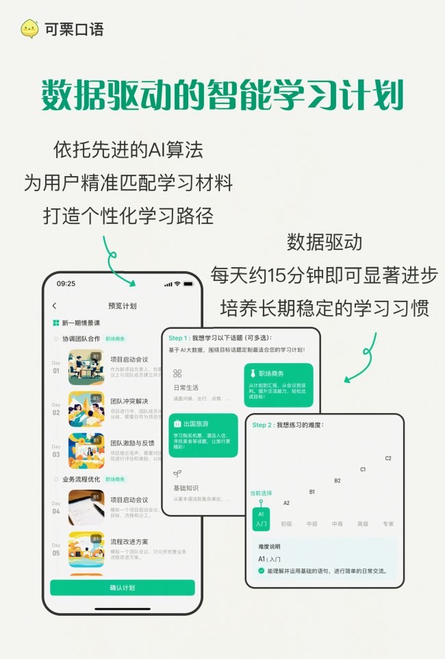 与其在“背单词-忘单词”的循环里内耗,不如立刻行动,用可栗口语开启每天10分钟的实战练习,30天后就能亲眼看到自己的变化!