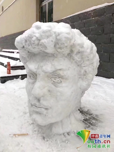 河北师范大学学生堆出的“大卫头像”雪人。河北师范大学 崔瑶 供图