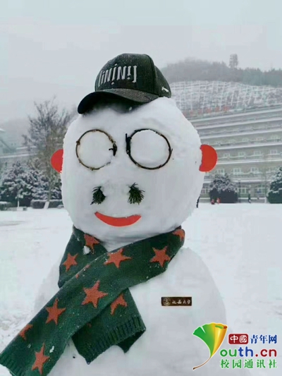延安大学学生堆出的雪人。延安大学 刘雨薇 供图