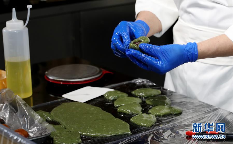 3月25日,宋伟泉演示青团的包制手法。新华社记者 方喆 摄