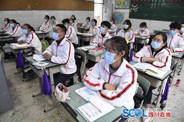 当日,成都市锦江区6所中学高三年级学生统一开学复课, 9691名高三年级学生回到了久违的校园。(记者 李向雨 摄影报道)