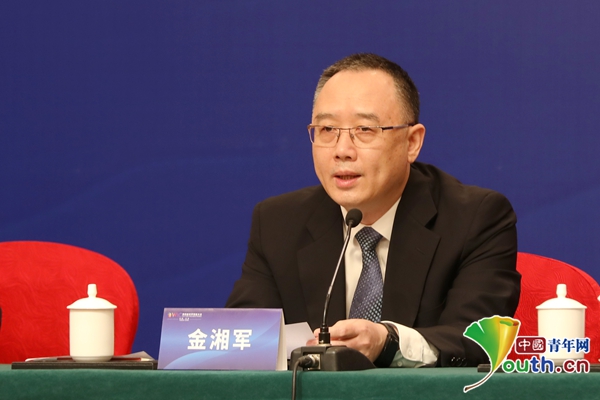 天津市副市长金湘军介绍大会情况。中国青年网记者 李华锡 摄
