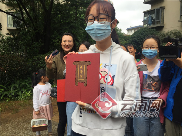 8月18日上午,家住昆明市的潘灵捷从EMS快递员手中接过自己北京大学的录取通知书。自此,2020年云南地区录取通知书投递工作全面启动。