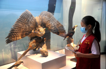 在“多彩的生命”展厅,陈列的则是“丹顶鹤、云豹、蜂猴等国家一二级重点保护动物的标本,以及各种鸟类、昆虫、贝类等生物标本,让小记者们了解到随着生命不断演化,世界逐渐变得丰富多彩,让孩子们见到日常不容易看到的珍稀动物,感受大自然的多样性。