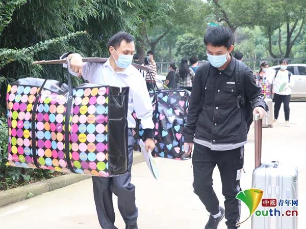 中国青年网北京9月27日电(记者 李华锡 通讯员 李洋洋 孙伊珞)扁担压在肩上,扁担的两头挑的是两个孩子沉甸甸的行李和家庭的希望……9月26日,武汉工商学院迎来了近3000名新生开学报到,其中有一对来自湖北武汉的龙凤胎兄妹,他们的父母用扁担挑着行李,陪着两个孩子一起扫码测温、办理入学手续、整理宿舍,沿途吸引了不少师生的关注。