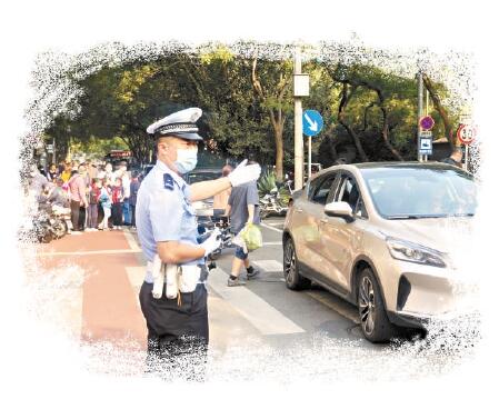 一边疏导,一边还要防着个别家长违停。李宁带着协警,将可移动锥桶临时码放在机动车道、非机动车道中间的白线上,同时指挥接学生的家长迅速将车开走。“为了避免校门前掉头加剧道路拥堵,我们还在路中间加装了硬隔离。”李宁介绍,根据校园周边整治标准,广安门交通大队在开学前对各中小学门前交通设施进行完善,加装了违法停车监控设备,加强警示提示,净化校门前秩序。