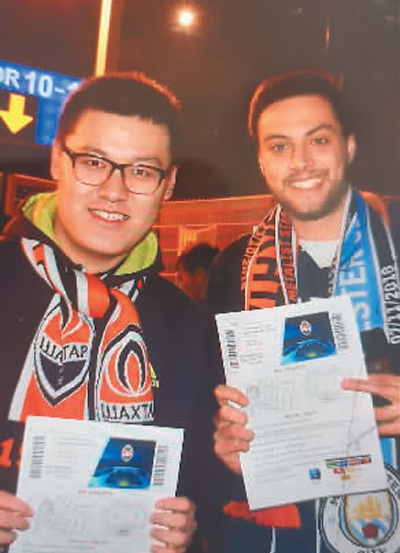 就读于乌克兰国立冶金大学的李博文(左)与同学在一起。