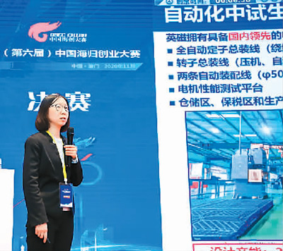 参赛选手正在2020(第六届)中国海归创业大赛中介绍公司产品。