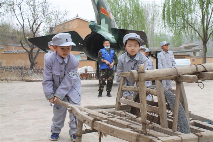 穿戴整齐的“小八路”们首先来到红色记忆小镇。置身红色记忆小镇,仿佛进入了时空隧道,朴拙的路面、曲折的巷道、石碾、独轮车、石磨、拱桥等这些极具时代印记的元素,加之丰富厚重的红色革命文化,犹如把人们带回了那个战火纷飞的年代。