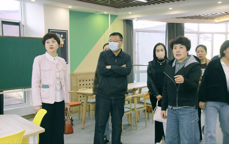 在图书馆二层教师阅读区,校长肖云向大家汇报丛阳小学智慧图书馆的建设初衷及设计理念。得到了市教育局各位领导的一致好评。