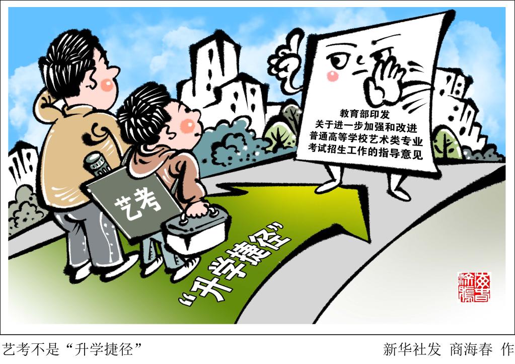 新华社记者胡浩、郑天虹、王莹严控校考范围和规模、提高文化课成绩要求、推进分类考试分类录取……教育部近日印发关于进一步加强和改进普通高等学校艺术类专业考试招生工作的指导意见,引起社会广泛关注。系列新规将给艺考带来哪些变化?对家长和考生们有何影响?记者进行了调查采访。