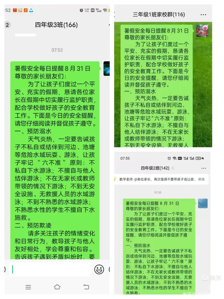 学校还十分重视家校共育。通过班级微信群,向家长传递安全教育的重要性和各类安全注意事项,引导家长在日常生活中加强对孩子的安全教育与监管,形成家校携手、共同守护的良好局面。