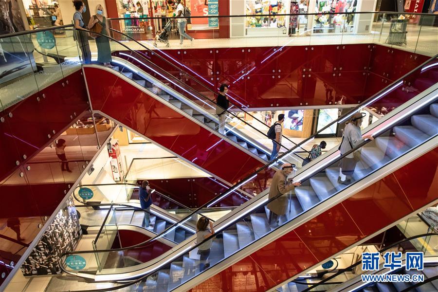 7月20日,在法国巴黎,人们戴着口罩在一家购物中心购物。 新华社发(奥雷利安·莫里萨尔摄)