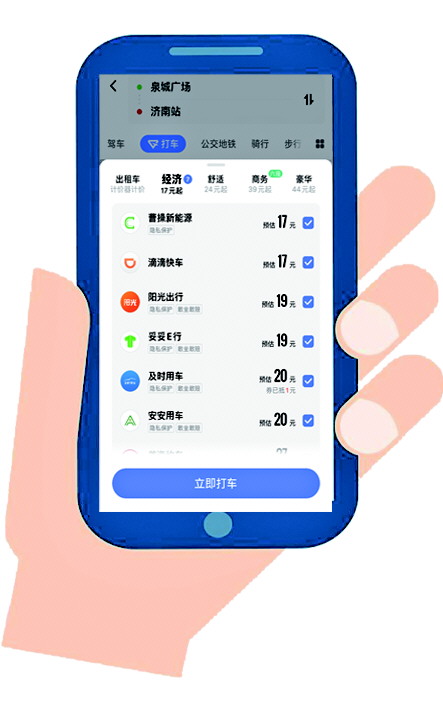 连日来,记者对这些聚合平台在省城的经营模式进行了体验。高德地图有五种车型,分别为出租车、经济、舒适、商务以及豪华。其中,出租车为聚的、首约、嘀嗒,经济有曹操新能源、滴滴快车、妥妥E行、阳光出行、及时用车、安安用车,舒适有曹操专车、神州专车,而商务和豪华包含了前面的品牌。