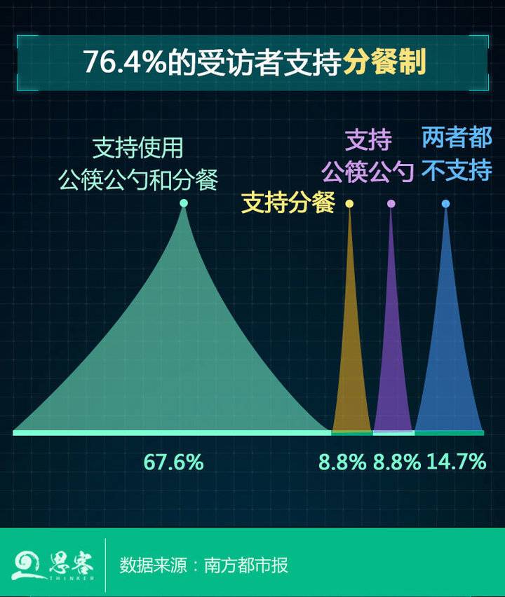 八成受访者认为推行公筷公勺制、分餐制很有必要。北京、广东等多地提出推行公筷公勺、推广分餐制倡议,获得民众的积极响应。