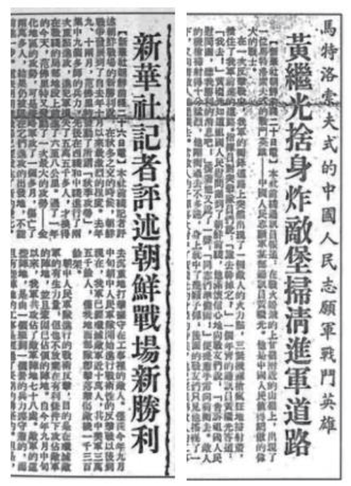 上甘岭战役期间,国内报纸刊登的新华社部分报道版面。