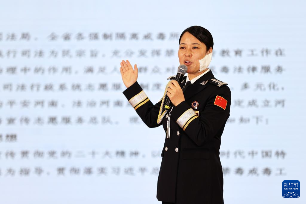 2026年1月9日,在河南省司法行政系统人民警察先进事迹报告会上,王妙丽做禁毒先进事迹报告。 新华社发