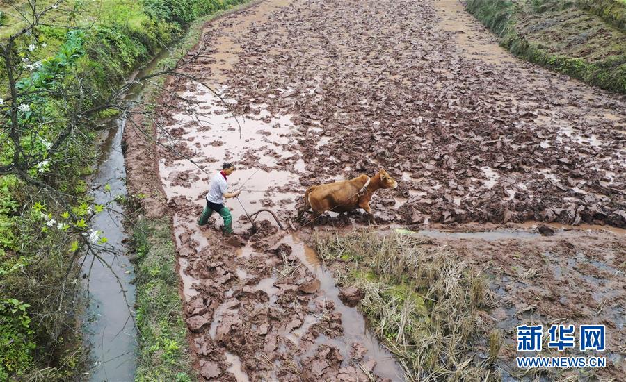 3月16日,大盛镇云龙村村民游贤文在田间劳作。 近日,随着气温逐渐回升,重庆市渝北区大盛镇农民抢抓农时,开展春耕春管作业。 新华社记者 王全超 摄