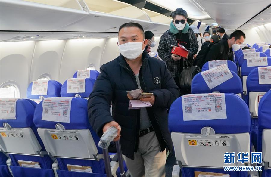 4月8日,在武汉天河国际机场,东方航空MU2527航班旅客登机。 当日零时起,武汉市正式解除离汉离鄂通道管控措施,有序恢复对外交通。 新华社记者 程敏 摄