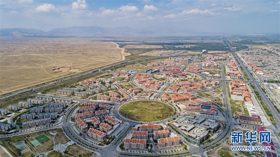 这是2019年9月3日拍摄的宁夏银川市永宁县闽宁镇新镇建设全景(无人机照片)。 新华社记者 王鹏 摄