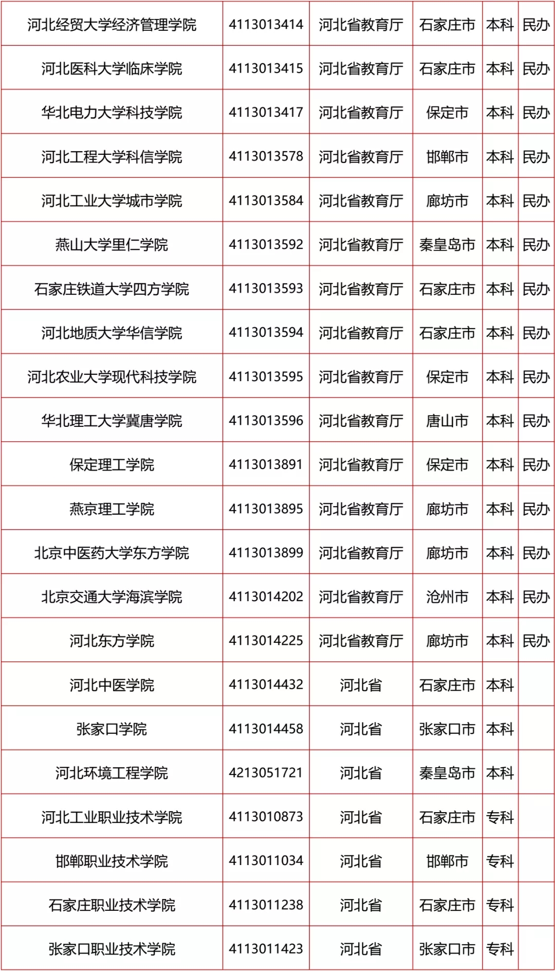 与之前公布的2019年度名单相比,河北新增3所高校,分别为邯郸幼儿师范高等专科学校、邯郸科技职业学院、唐山海运职业学院。
