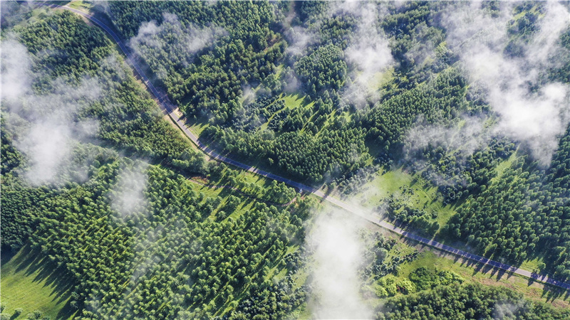 清晨,位于河北省承德市的塞罕坝国家森林公园云雾缭绕,美景如画。新华社发(刘满仓 摄)