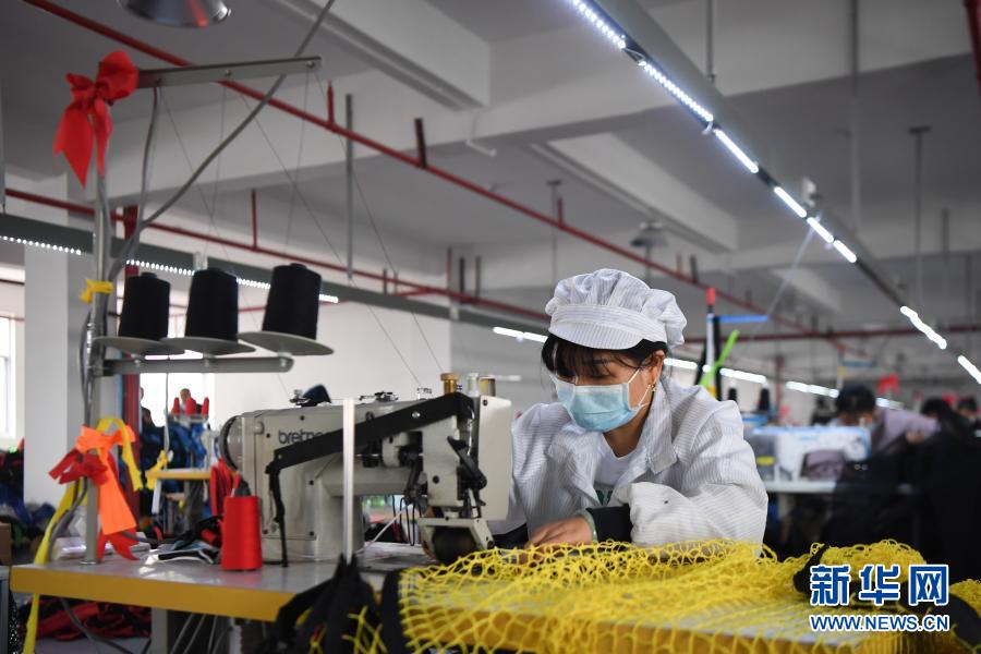 工人在湖南星海运动用品有限公司加工运动用网(10月28日摄)。新华社记者 薛宇舸 摄