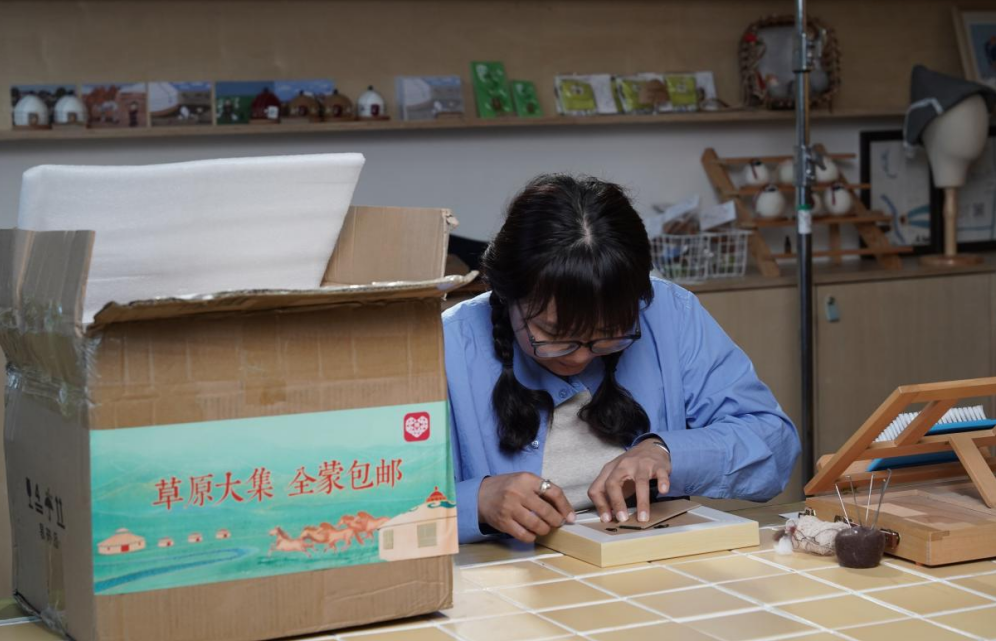 现实中,刺毡在她指尖留下厚茧,疼痛在久坐中沿肘关节、脊椎蔓延,但不温不火的线上订单仅能应付生计。直到2024年3月,呼和浩特演员邓为用她创作的羊毛毡书签为家乡宣传,至少三千笔同款订单一下涌来,懵了两天后,她才意识到得招人了,但陆续加入的四十多个阿姨都不会做羊毛毡,只能靠她手把手教。