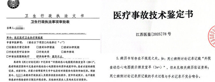 南通市卫健委2025年8月15日出具的一份《卫生行政执法事项审批表》中也再次提到对南通市第一人民医院医生提供的宋女士“外院查动态心电图提示频发室早(3w+)”的真实性不能确认,且住院检查记录和门诊检查记录存在明显差异,另外《审批表》中还表明,心血管疾病介入诊疗技术中射频消融术为江苏省限制类医疗技术,该院心内科未执行手术审批制度。经查,电子病历系统后台显示,2025年4月29日,“郑某”账号对患者的《术前小结》中关于此次手术审批内容实施审批时,郑某本人在医院门诊上班并有相关接诊记录,郑某确认其未实施此次手术审批。因郑某未妥善保管其电子病历系统的账号、密码信息,导致无法追溯该手术审批的实际操作人员。