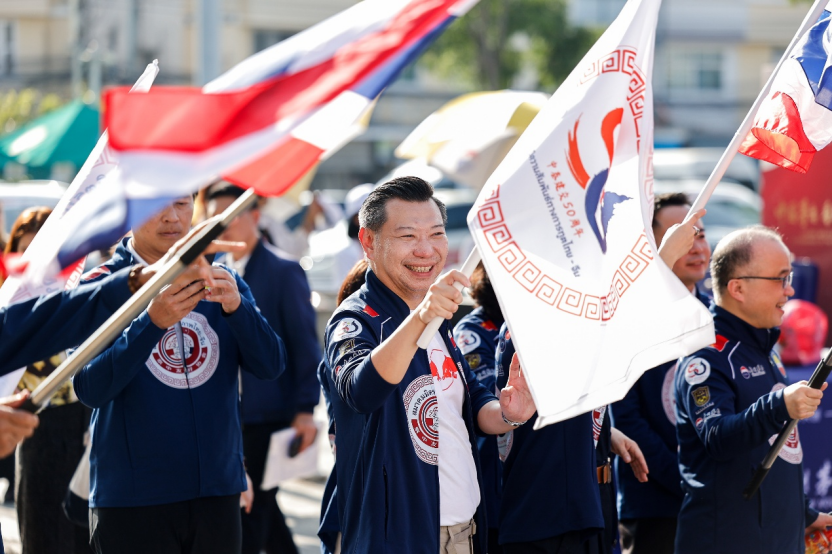 曼谷,10月10日,在“中泰友谊金色50年”的热闹氛围中,由泰中友好协会主办的“中泰建交50周年友谊之旅”车队发车仪式在曼谷市政厅广场隆重举行。中国驻泰国使馆公使吴志武、泰国前副总 理、泰中友好协会会长功・塔帕朗西(Korn Dabbaransi)、泰国国家旅游局局长塔佩妮(Thapanee Kiatphaibool)、天丝集团首席商务官兼中国区首席执行官曾森鸿等两国政商代表及各界友好人士出席发车仪式,共同见证这一中泰民间交流的重要时刻。作为深耕中泰市场、积极助力两国民心相通的代表企业,天丝集团倾力赞助友谊车队顺利启程,以实际行动助力“中泰一家亲”走深走实,为中泰友谊注入红牛能量。