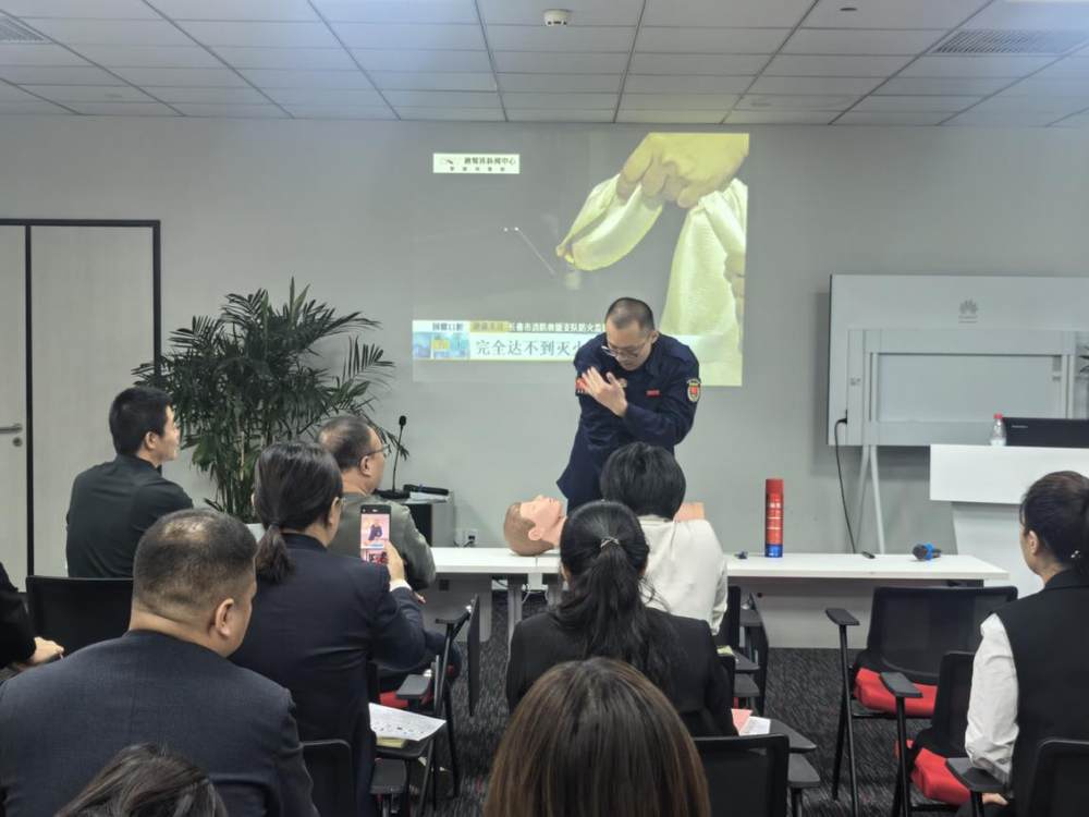 在讲解火灾发生时的应对举措时,教官不仅传授了如何正确报警、迅速组织人员疏散的方法,还特别强调了保持冷静的重要性。此外,教官还用假人现场教学心脏复苏和人工呼吸,详细演示每一个动作的规范操作,包括按压的位置、深度、频率以及人工呼吸的吹气方法等,并邀请员工上台进行实操练习,及时纠正不规范动作,确保员工们真正掌握这两项关键的急救技能。